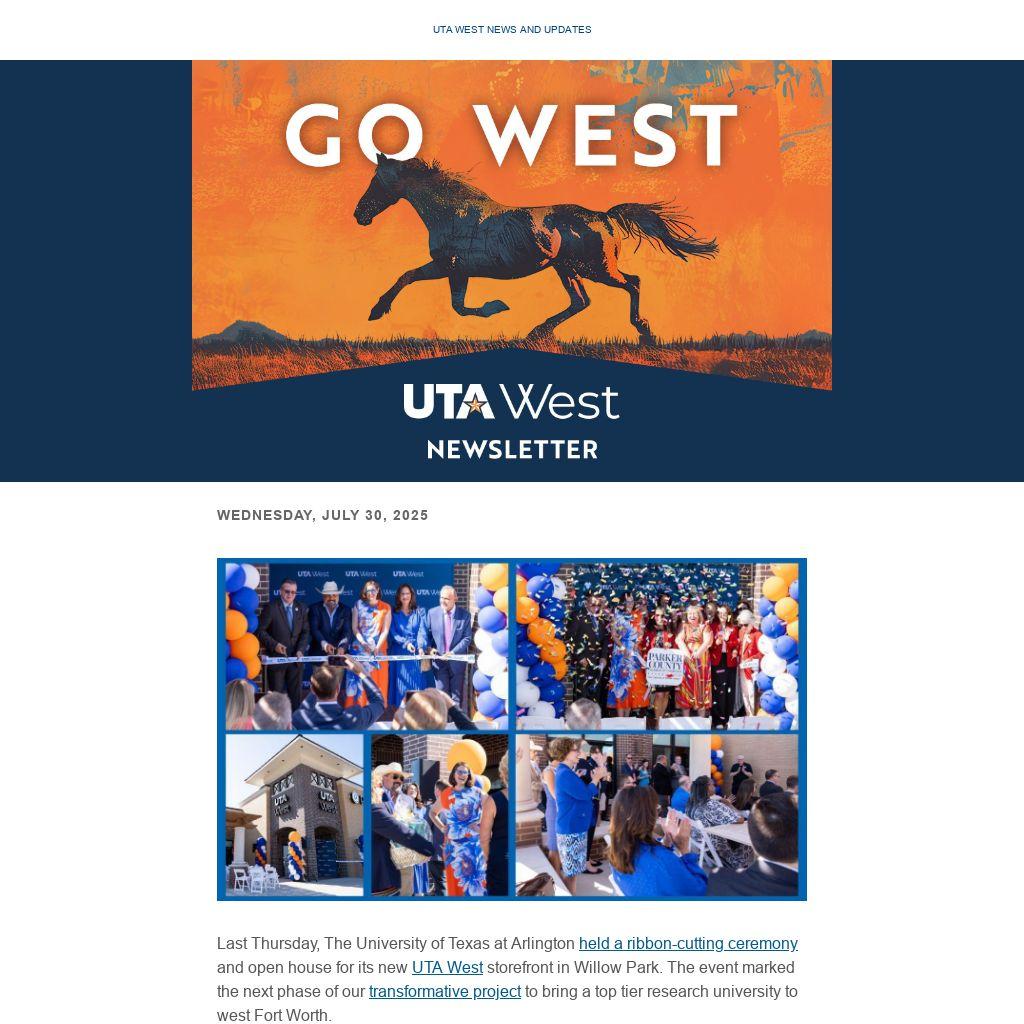 Last Thursday, The University of Texas at Arlington held a ribbon-cutting ceremony and open house for its new UTA West storefront in Willow Park. The event marked the next phase of our transformative project to bring a top tier research university to west Fort Worth.