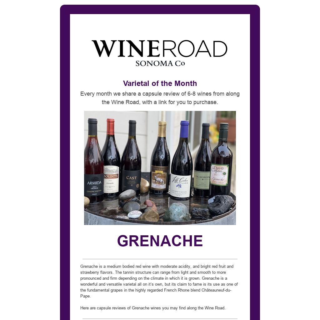 | Varietal of the Month Every month we share a capsule review of 6-8 wines from along the Wine Road, with a link for you to purchase.