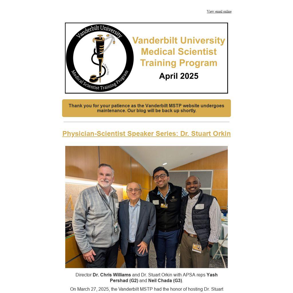 The MSTP Newsletter and Blog are brought to you by the MSTP Communications Committee. Please let us know if you have news or other content that you would like to share with the Vanderbilt MSTP community by completing this form.