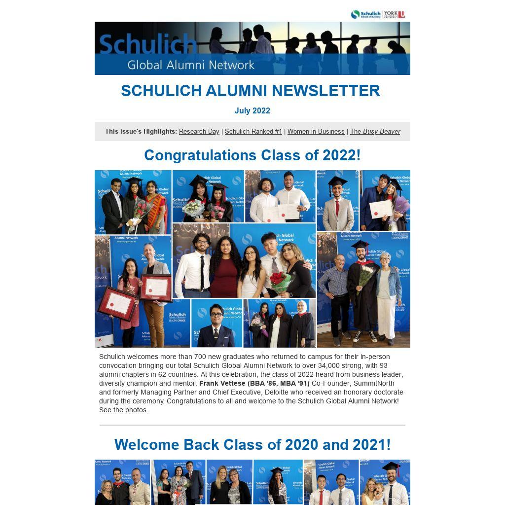Schulich welcomes more than 700 new graduates who returned to campus for their in-person convocation bringing our total Schulich Global Alumni Network to over 34,000 strong, with 93 alumni chapters in 62 countries. At this celebration, the class of 2022 heard from business leader, diversity champion and mentor, Frank Vettese (BBA '86, MBA '91) Co-Founder, SummitNorth and formerly Managing Partner and Chief Executive, Deloitte who received an honorary doctorate during the ceremony. Congratulations to all and welcome to the Schulich Global Alumni Network! See the photos