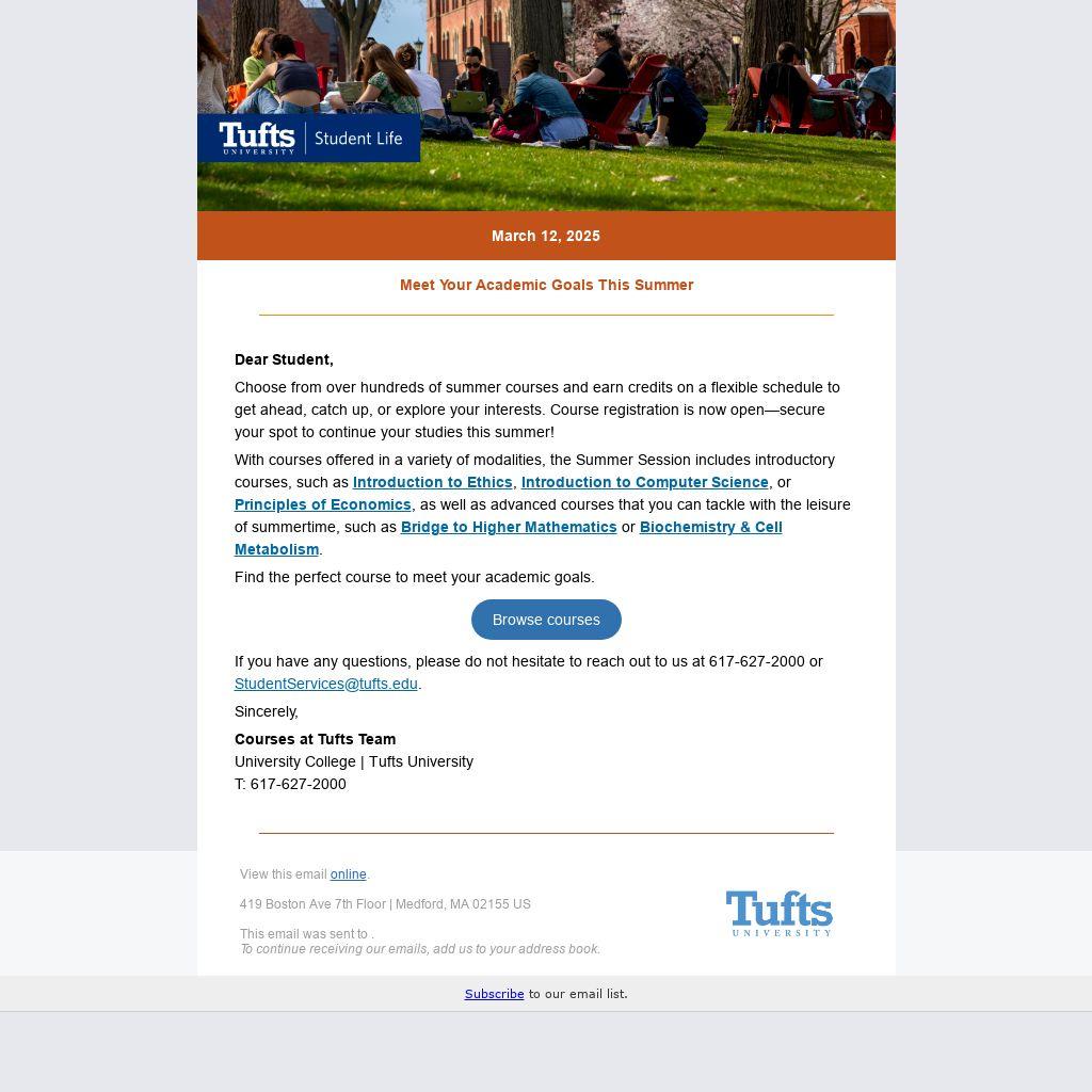 If you have any questions, please do not hesitate to reach out to us at 617-627-2000 or StudentServices@tufts.edu.