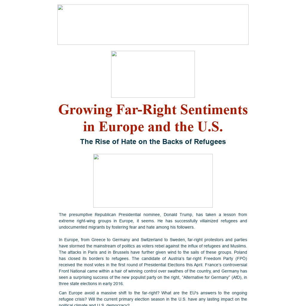 Can Europe avoid a massive shift to the far-right? What are the EU's answers to the ongoing refugee crisis? Will the current primary election season in the U.S. have any lasting impact on the political climate and U.S. democracy?