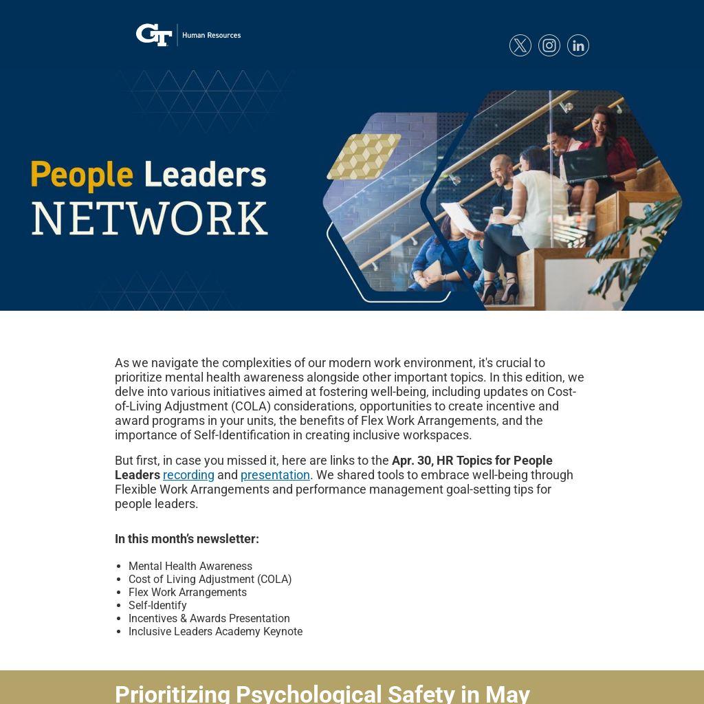 But first, in case you missed it, here are links to the Apr. 30, HR Topics for People Leaders recording and presentation. We shared tools to embrace well-being through Flexible Work Arrangements and performance management goal-setting tips for people leaders.