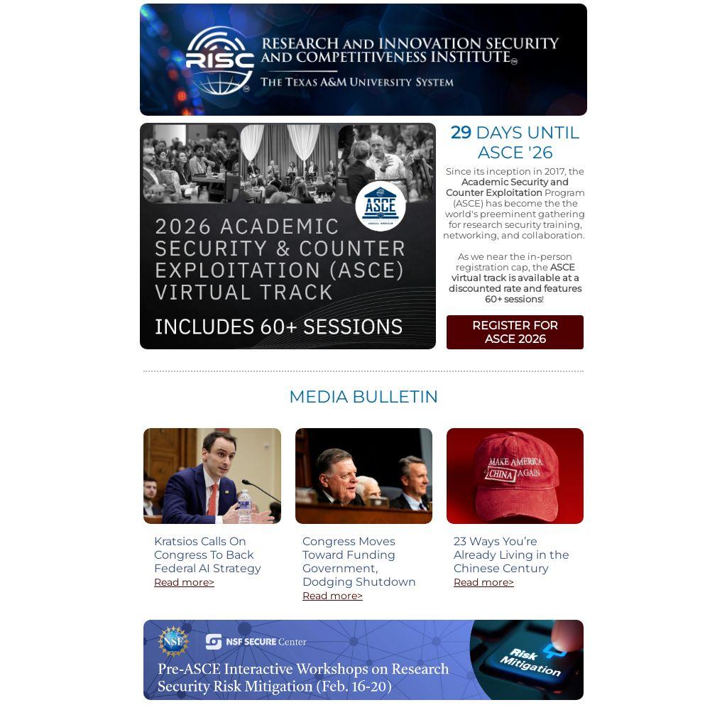 Since its inception in 2017, the Academic Security and Counter Exploitation Program (ASCE) has become the the world's preeminent gathering for research security training, networking, and collaboration.