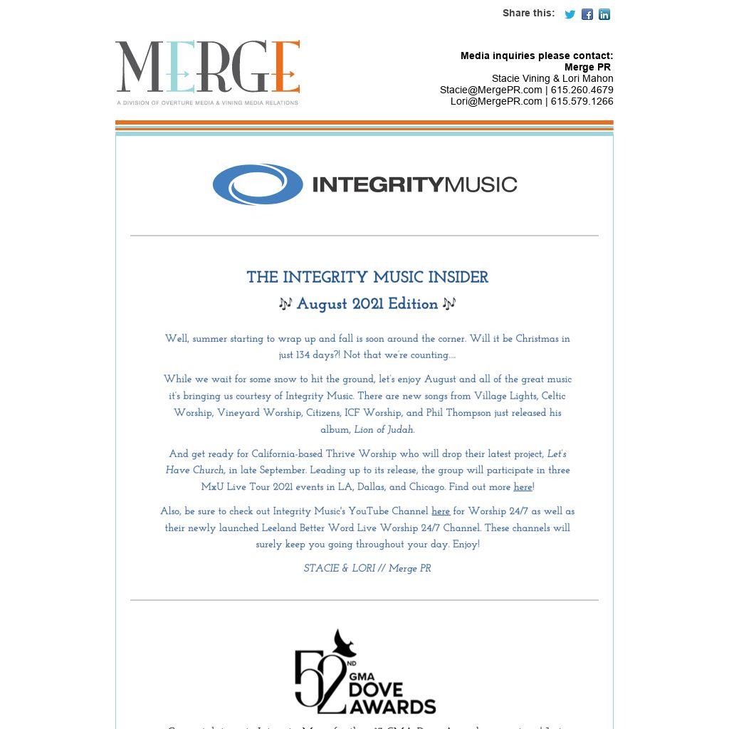 ABOUT INTEGRITY MUSIC:Â Integrity Music is part of the David C. Cook family, a nonprofit global resource provider serving the Church with life-transforming materials. With offices in Nashville, Tennessee (US) and Brighton, West Sussex (UK), Integrity is committed to taking songs of substance to the local church and its leaders around the world.Â