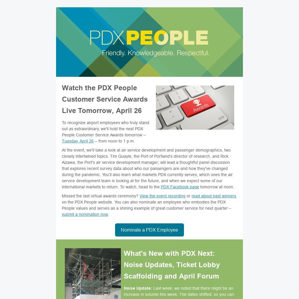Watch the PDX People Customer Service Awards Live Tomorrow, April 26