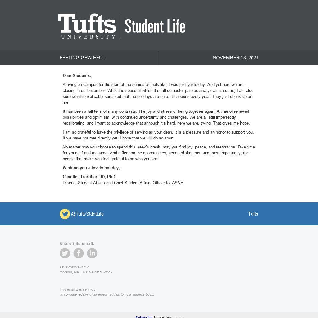 I am so grateful to have the privilege of serving as your dean. It is a pleasure and an honor to support you. If we have not met directly yet, I hope that we will do so soon.