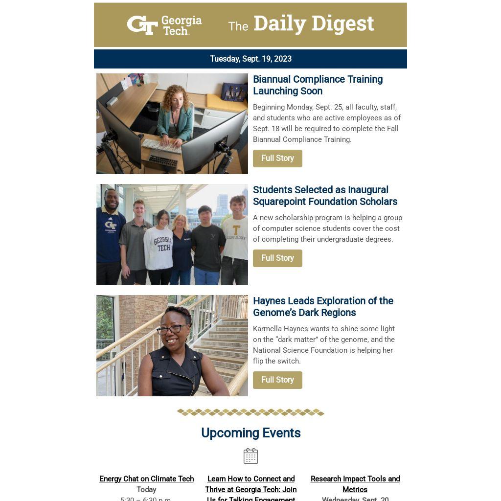 Beginning Monday, Sept. 25, all faculty, staff, and students who are active employees as of Sept. 18 will be required to complete the Fall Biannual Compliance Training.