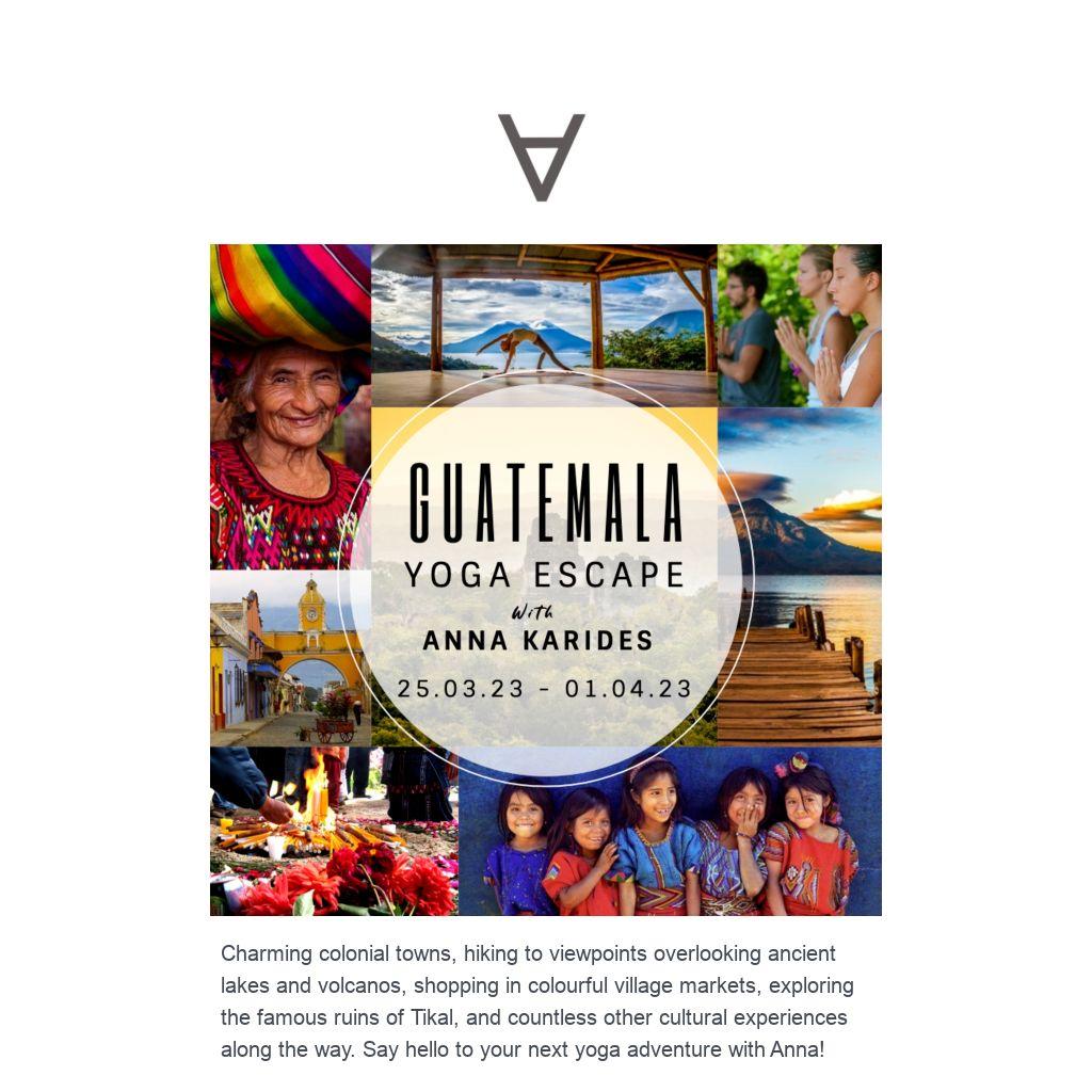 Charming colonial towns, hiking to viewpoints overlooking ancient lakes and volcanos, shopping in colourful village markets, exploring the famous ruins of Tikal, and countless other cultural experiences along the way. Say hello to your next yoga adventure with Anna!