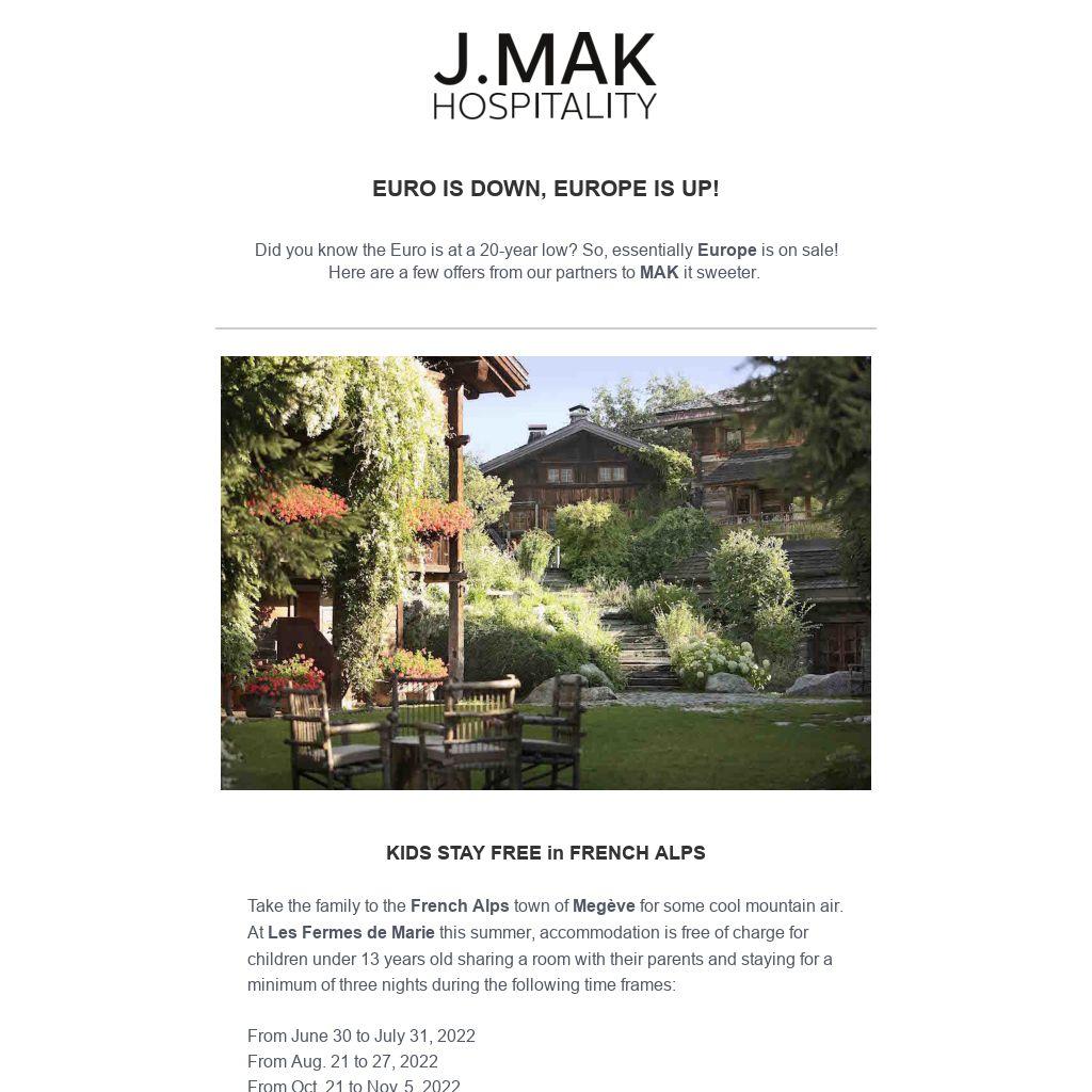 J.MAK OFFER: 15% commission on all La Fiermontina Vendome bookings.