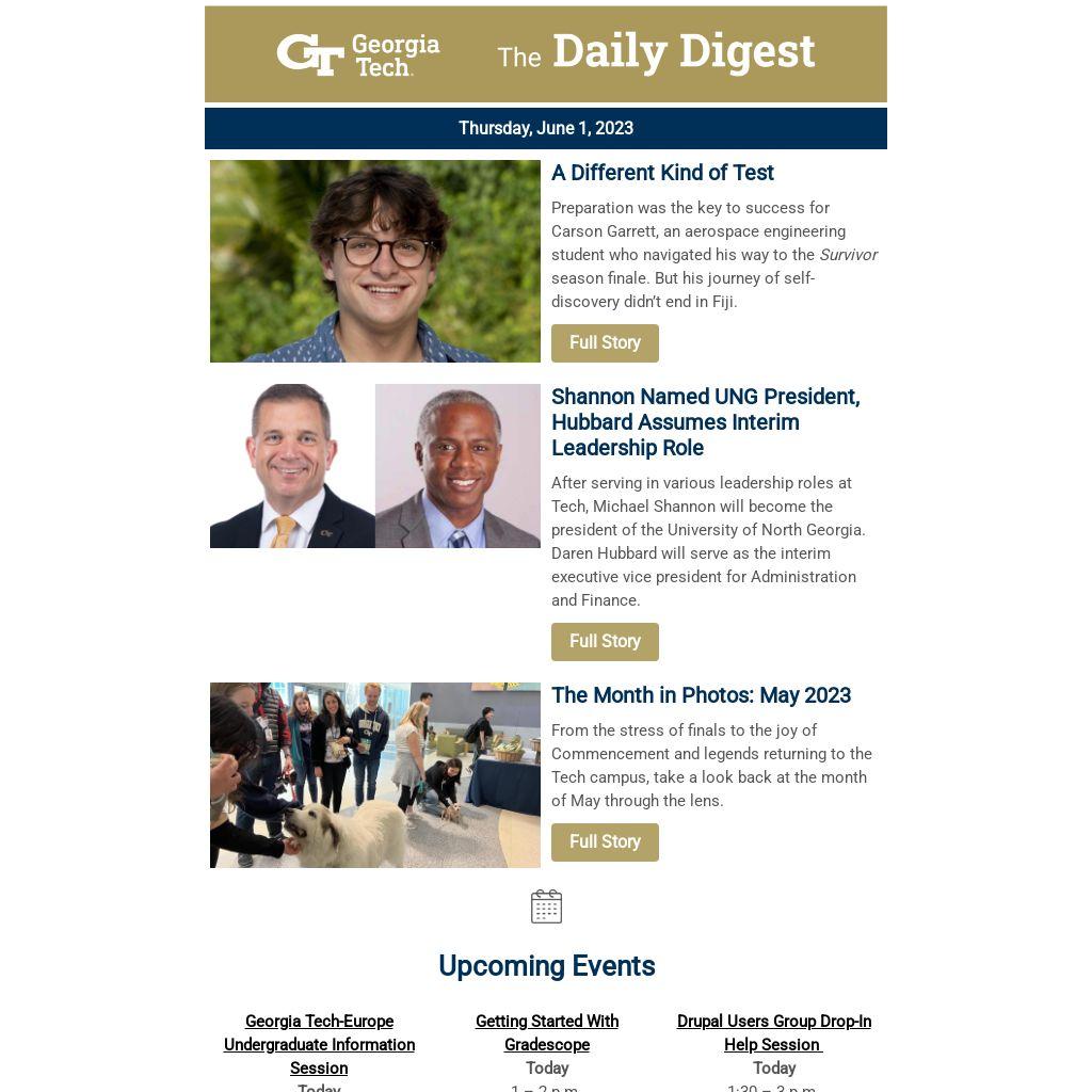| | After serving in various leadership roles at Tech, Michael Shannon will become the president of the University of North Georgia. Daren Hubbard will serve as the interim executive vice president for Administration and Finance.