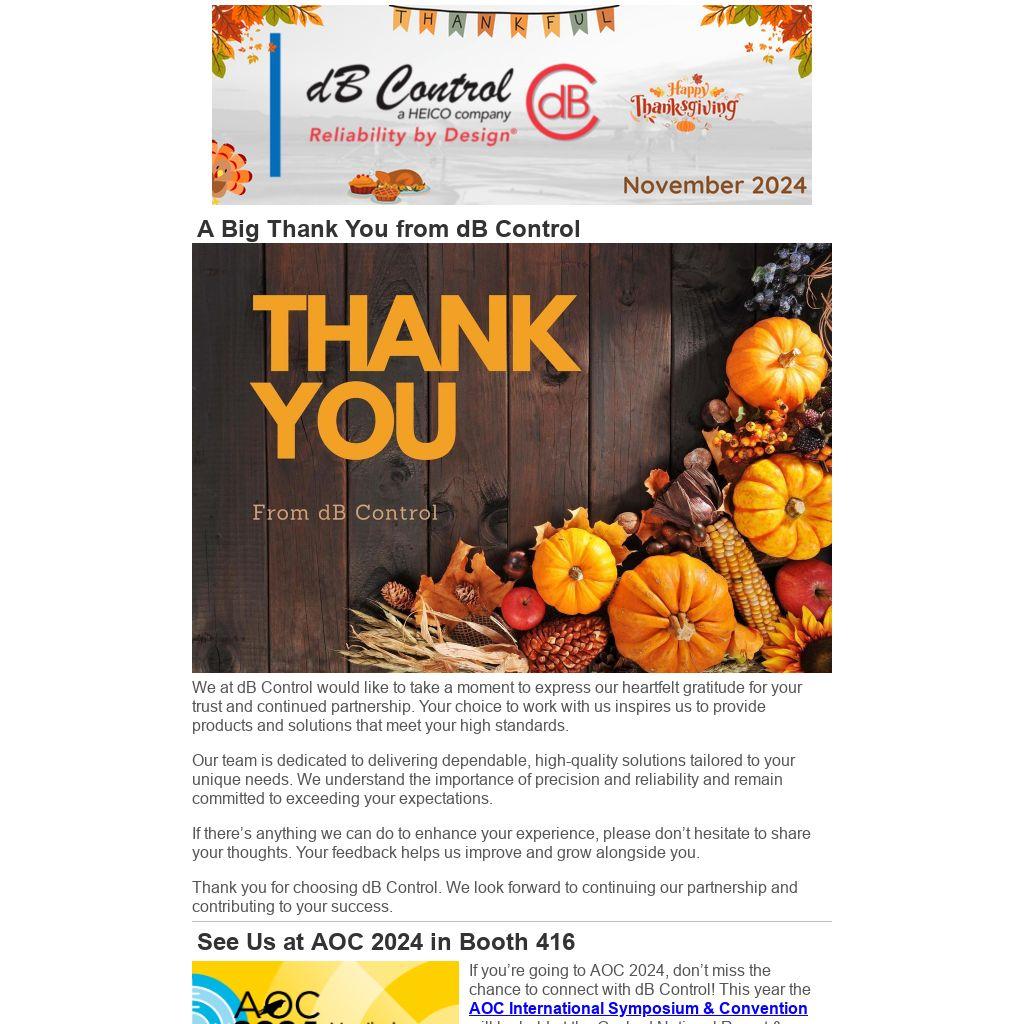 We at dB Control would like to take a moment to express our heartfelt gratitude for your trust and continued partnership. Your choice to work with us inspires us to provide products and solutions that meet your high standards.