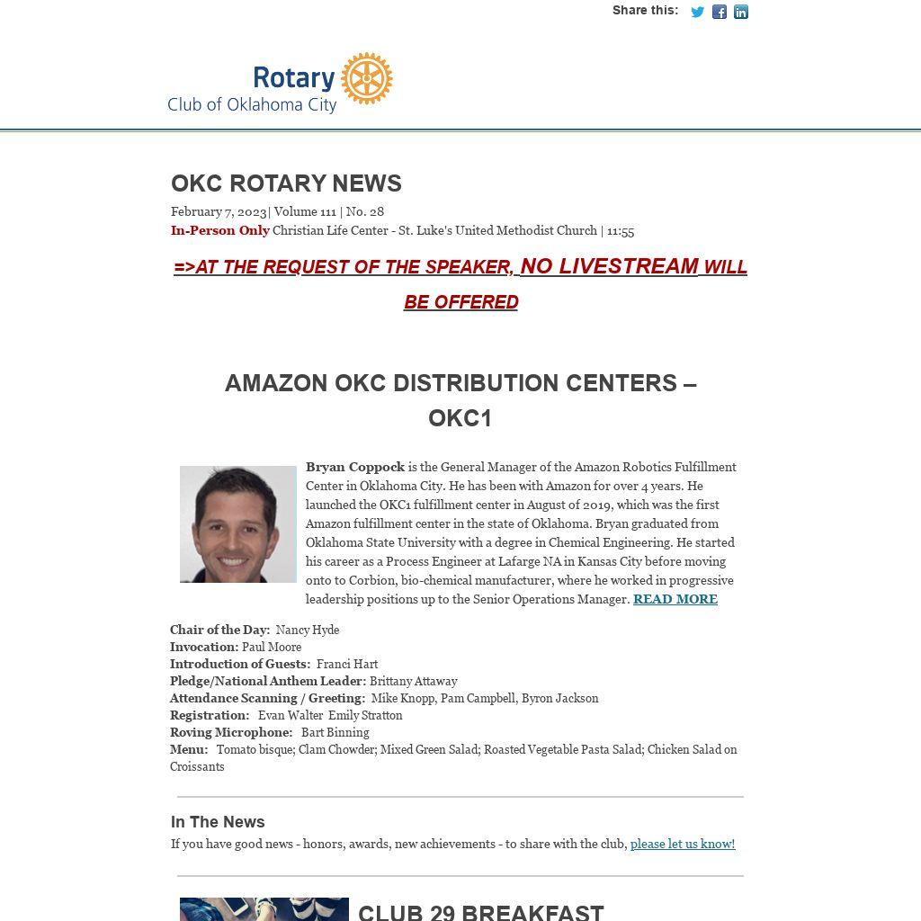 OKC Rotary NewsFebruary 7, 2023| Volume 111 | No. 28