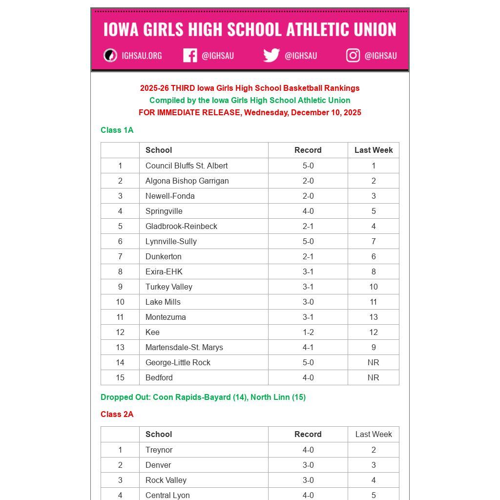 2025-26 THIRD Iowa Girls High School Basketball Rankings