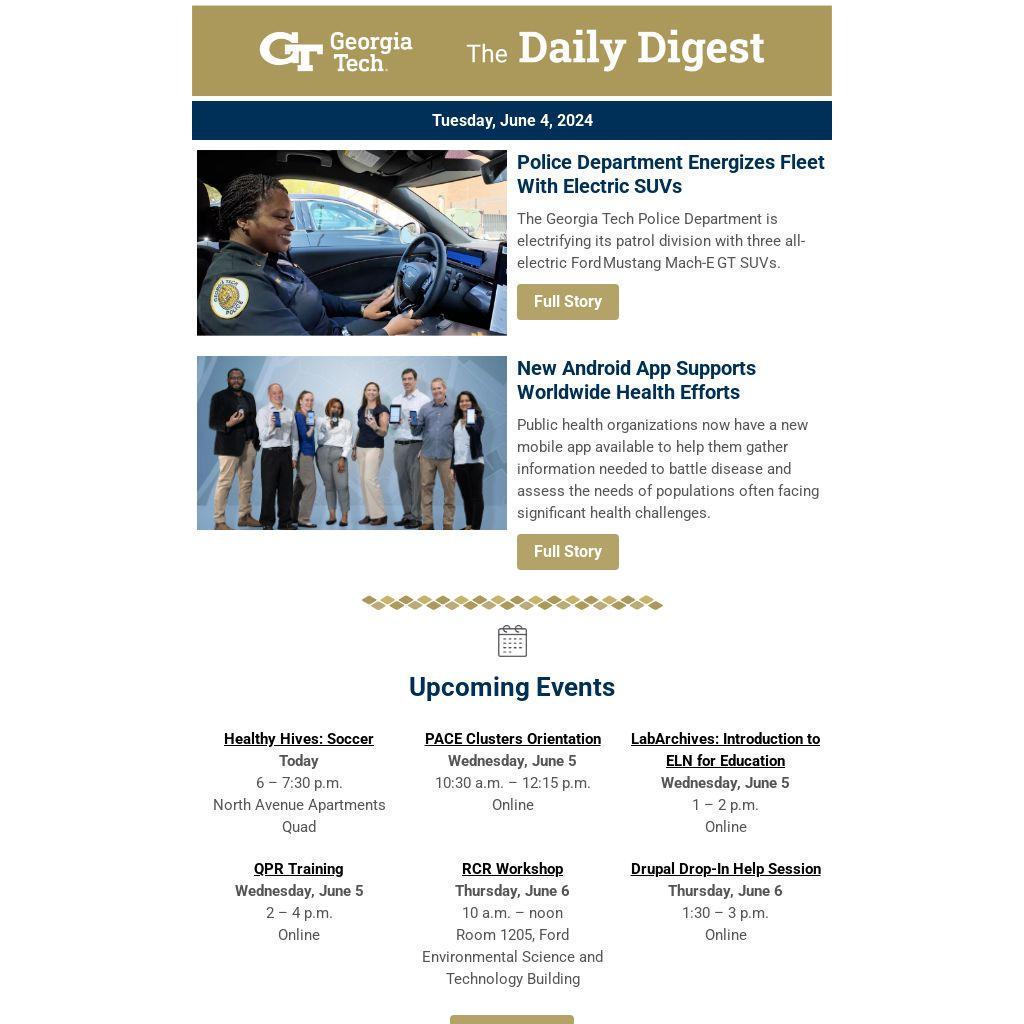 The Georgia Tech Police Department is electrifying its patrol division with three all-electric Ford Mustang Mach-E GT SUVs.