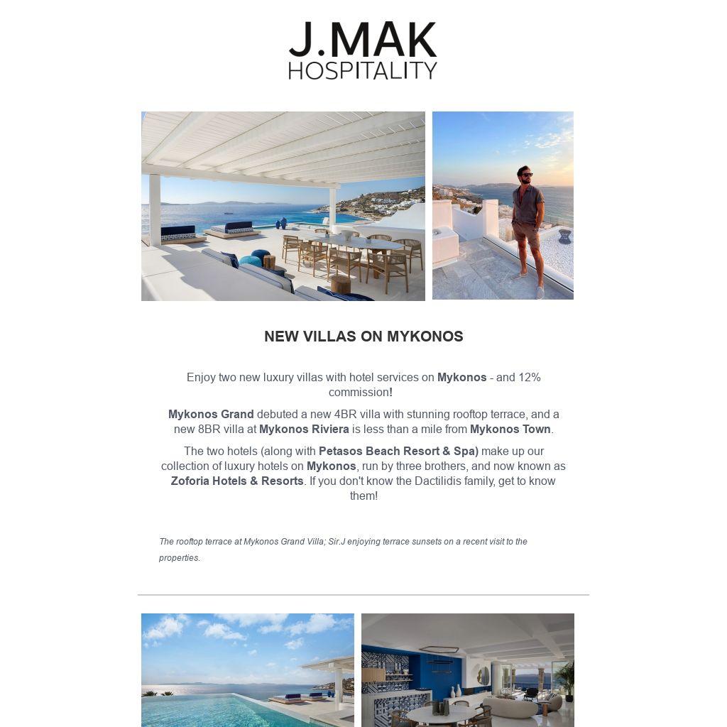 Stunning in its simplicity, seamlessly blending with its surroundings, the Mykonos Riviera Hotel & Spa's new 8-bedroom private villa is impeccably designed and perched on the resort's highest point, affording the panoramic vistas of the endless horizon, the Aegean Sea, the Sunset, and the charming, nearby Mykonos Town.
