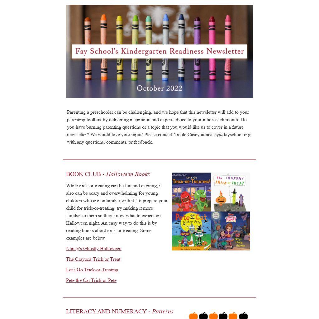 Kindergarten often lays the foundation for a child's entire learning experience. At Fay, our small class size and differentiated approach helps each kindergartener establish the skills they will need for a successful educational journey.