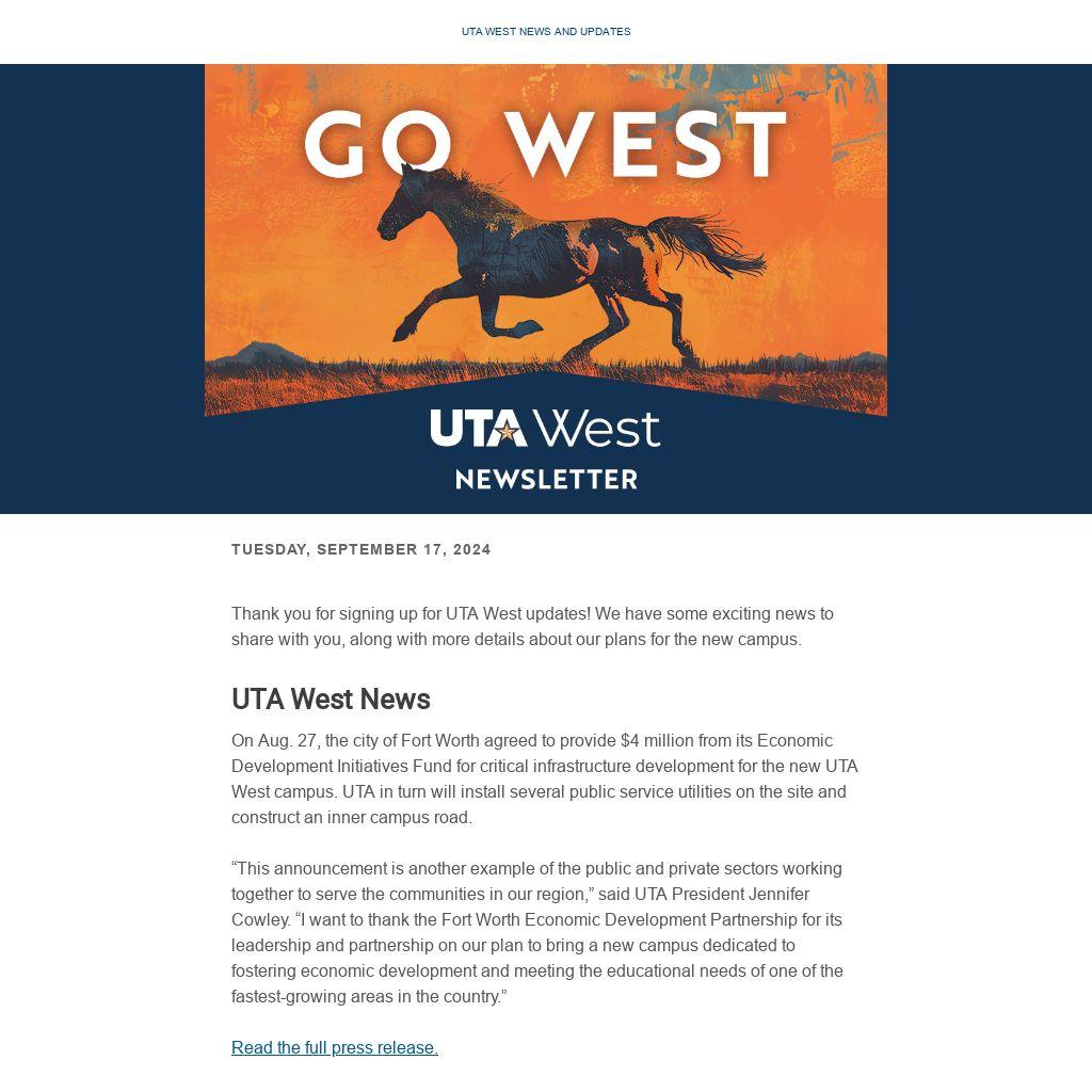 On Aug. 27, the city of Fort Worth agreed to provide $4 million from its Economic Development Initiatives Fund for critical infrastructure development for the new UTA West campus. UTA in turn will install several public service utilities on the site and construct an inner campus road.
