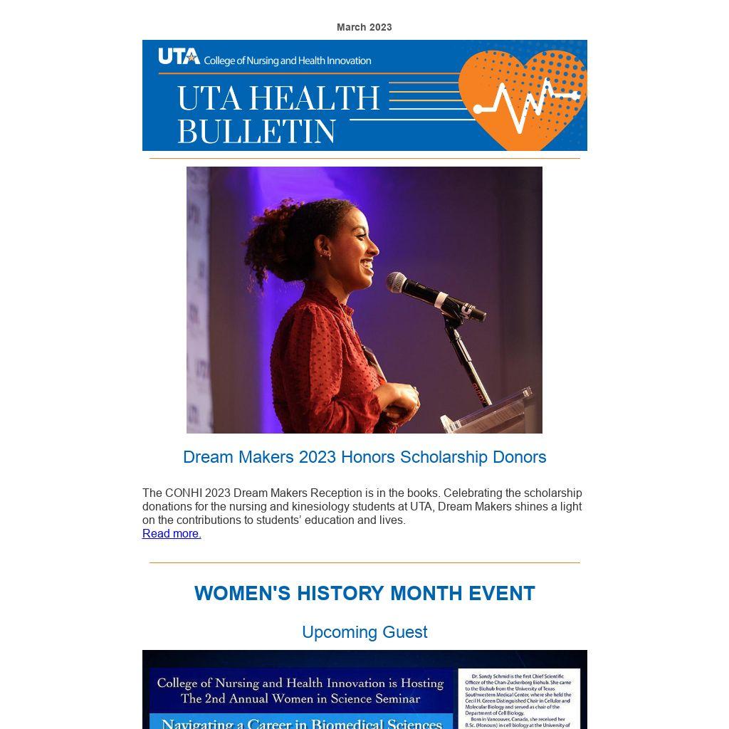 The CONHI 2023 Dream Makers Reception is in the books. Celebrating the scholarship donations for the nursing and kinesiology students at UTA, Dream Makers shines a light on the contributions to students’ education and lives.