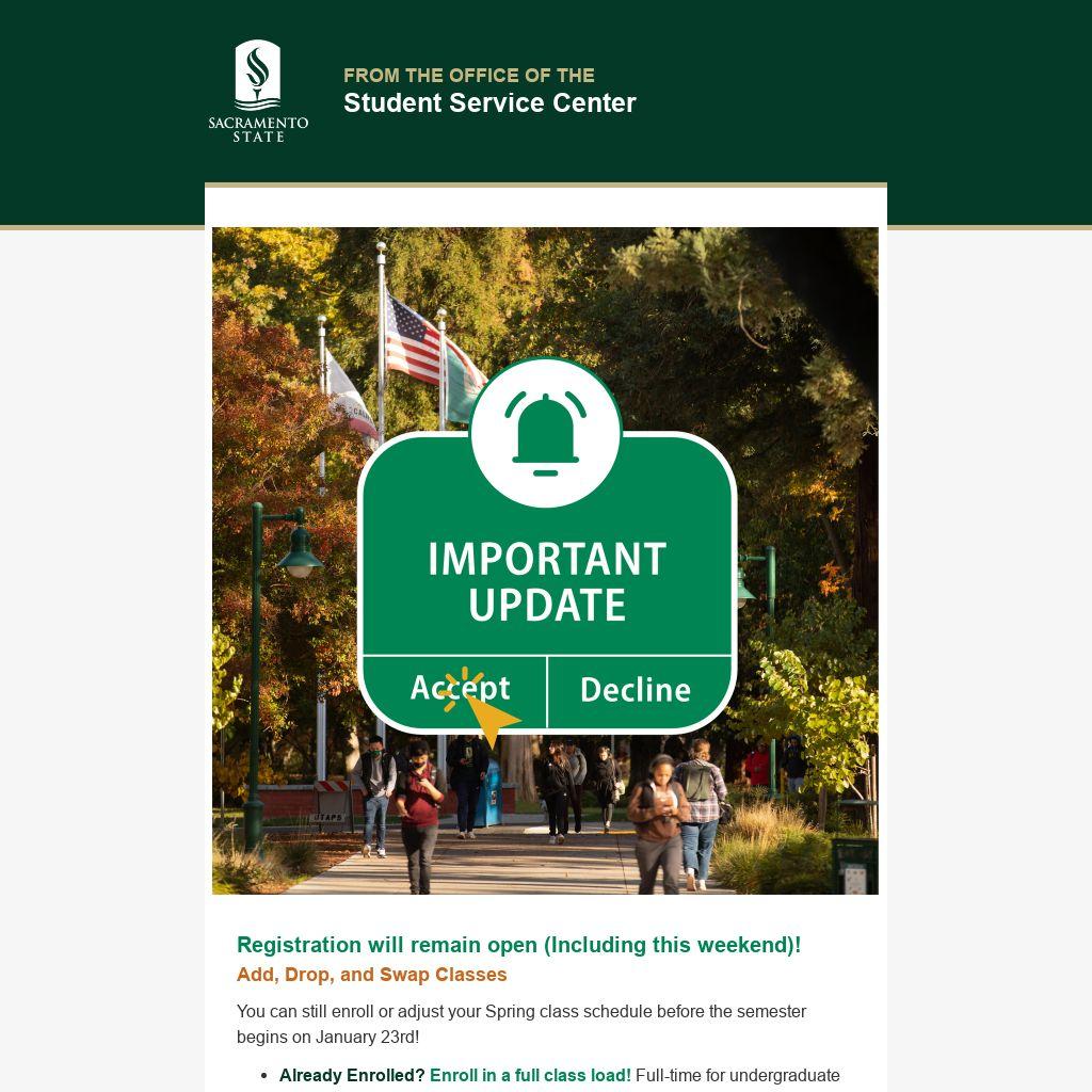 You can still enroll or adjust your Spring class schedule before the semester begins on January 23rd!