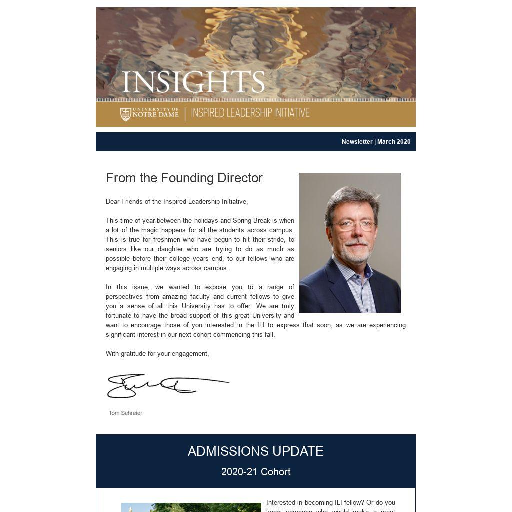 In this issue, we wanted to expose you to a range of perspectives from amazing faculty and current fellows to give you a sense of all this University has to offer. We are truly fortunate to have the broad support of this great University and want to encourage those of you interested in the ILI to express that soon, as we are experiencing significant interest in our next cohort commencing this fall.