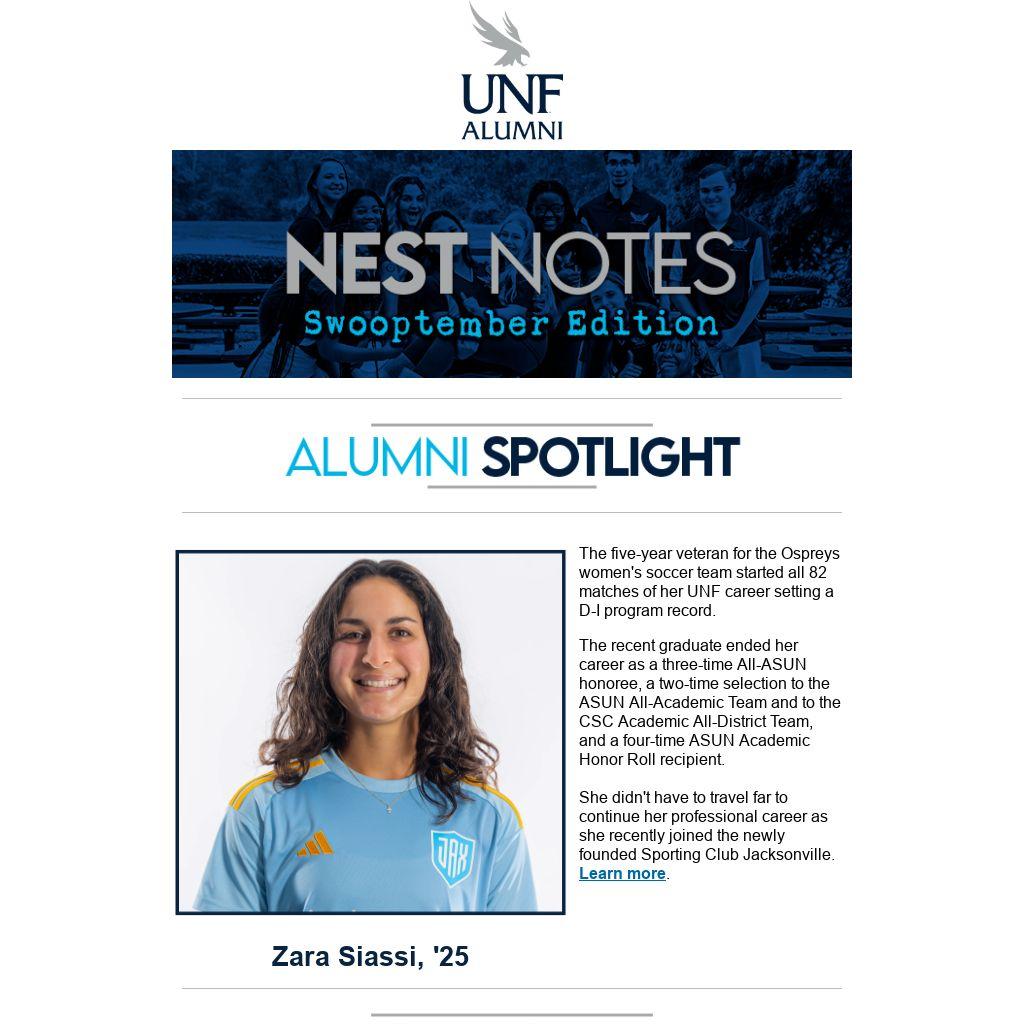 | The five-year veteran for the Ospreys women's soccer team started all 82 matches of her UNF career setting a D-I program record.