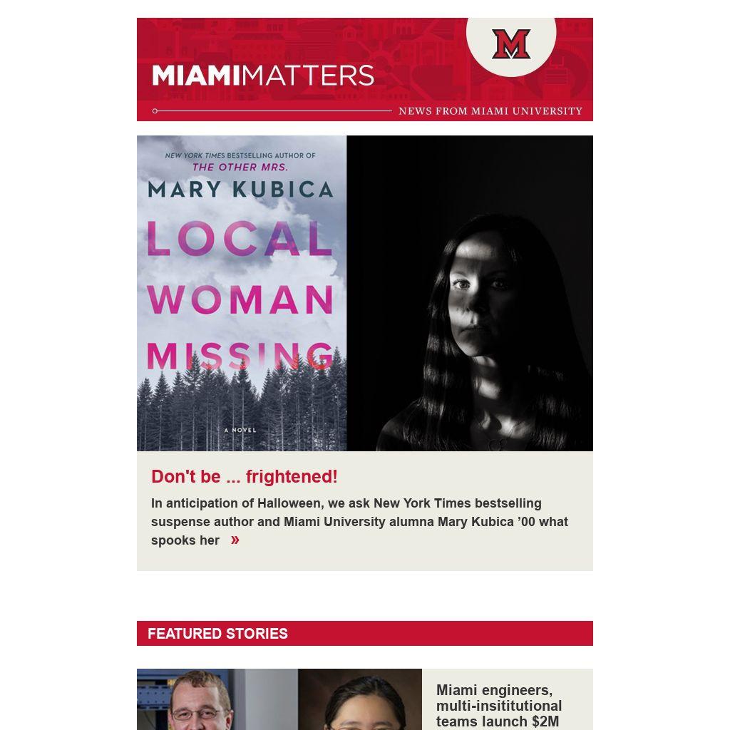 In anticipation of Halloween, we ask New York Times bestselling suspense author and Miami University alumna Mary Kubica ’00 what spooks her
