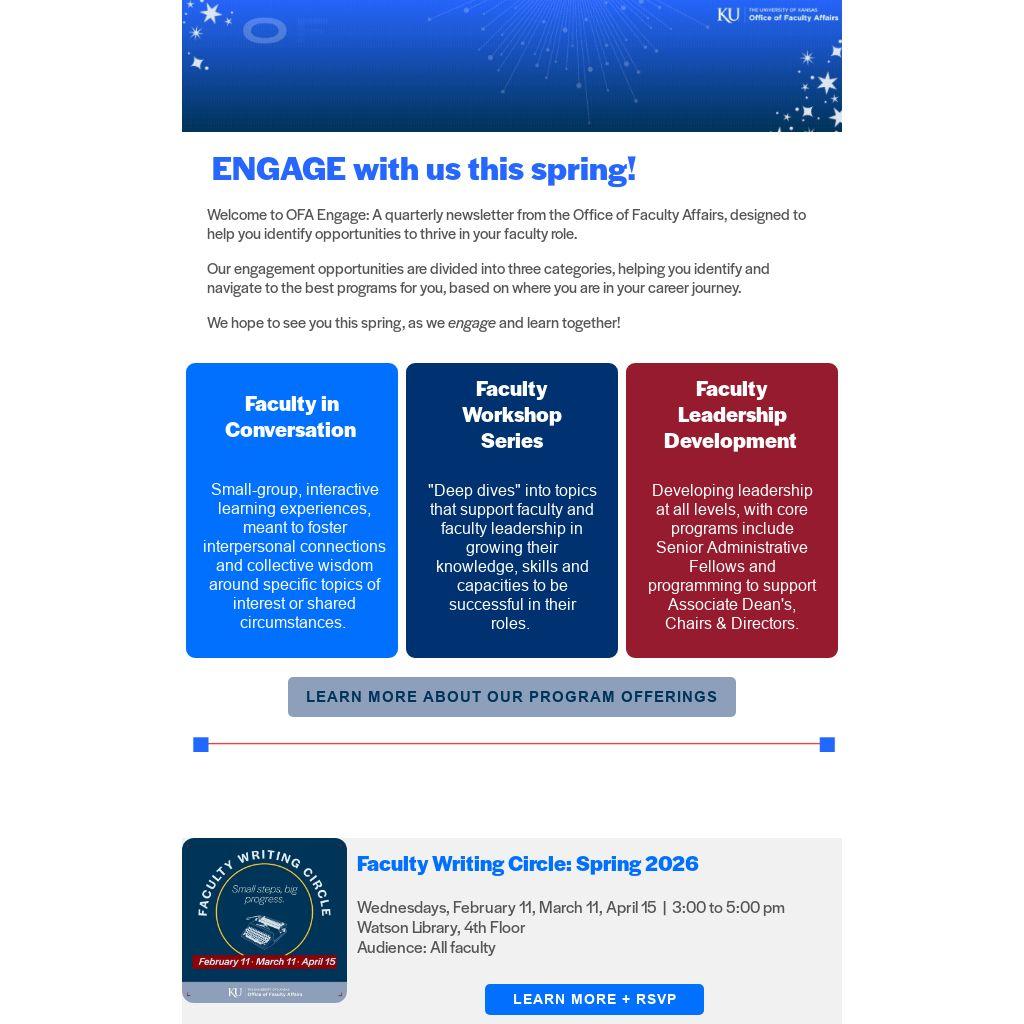Welcome to OFA Engage: A quarterly newsletter from the Office of Faculty Affairs, designed to help you identify opportunities to thrive in your faculty role.