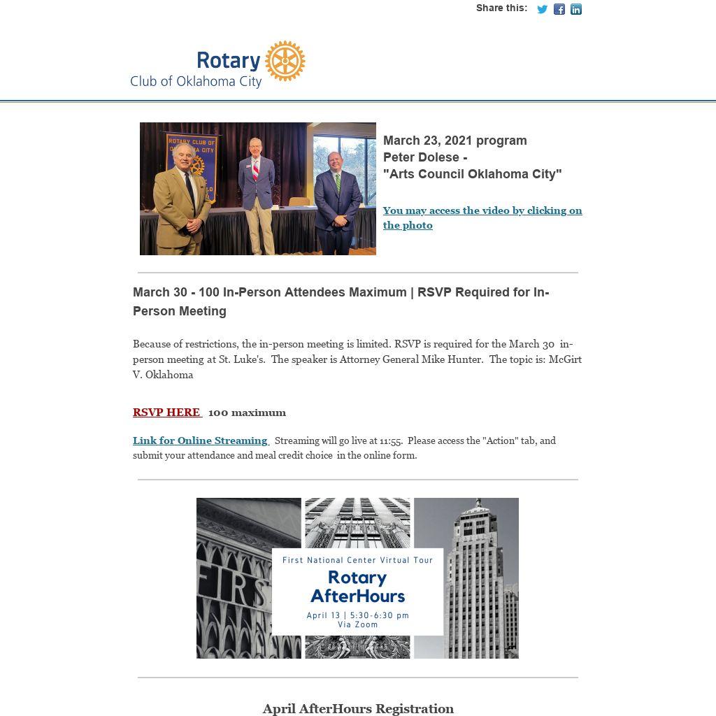 Rotary Club of Okla. City 625 NW 13th St. Ste 105 Okla. City, OK 73103 Phone: 405-235-5100 okcrotary.club