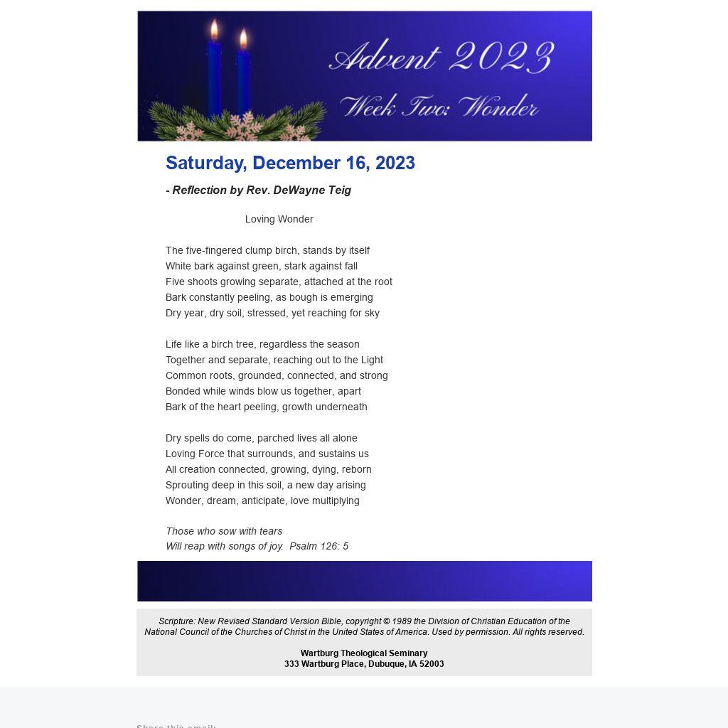 - Reflection by Rev. DeWayne Teig