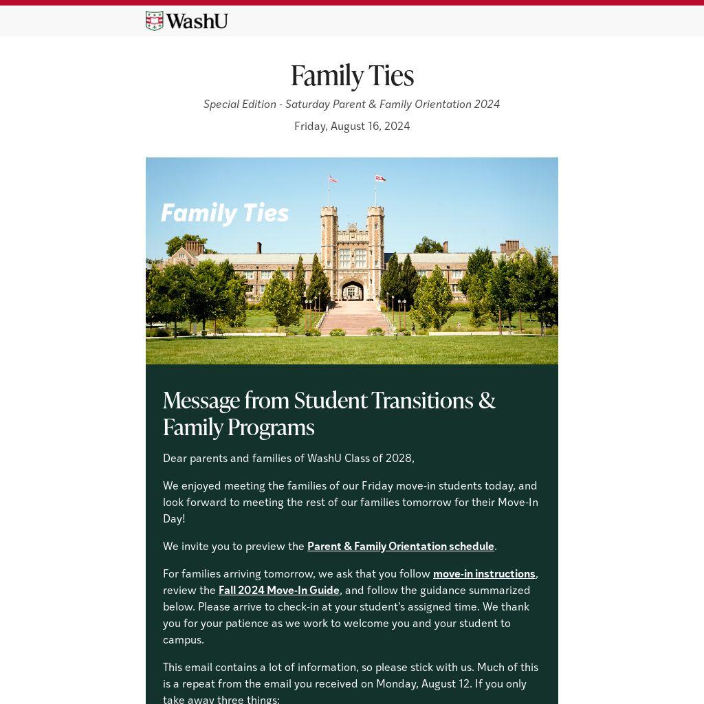 For more information, additional events, and descriptions, please refer to the full Parent & Family Orientation Schedule.