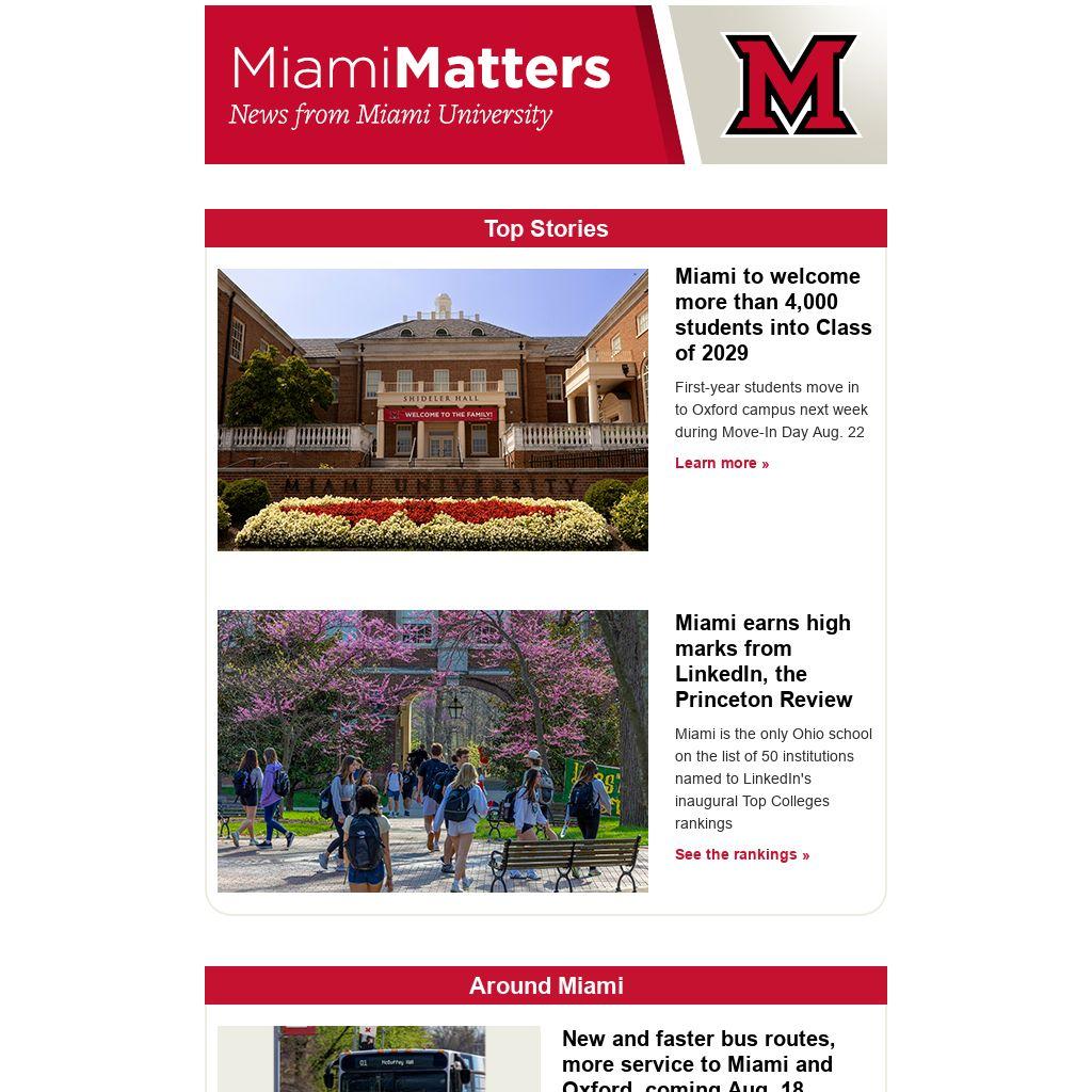 Miami is the only Ohio school on the list of 50 institutions named to LinkedIn's inaugural Top Colleges rankings