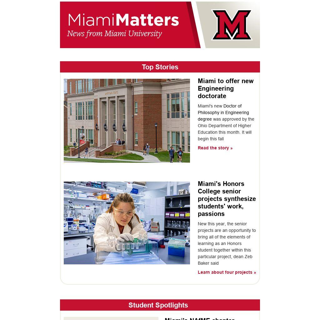 New Engineering doctorate; Renew your Parking Permit; Honors College , mor