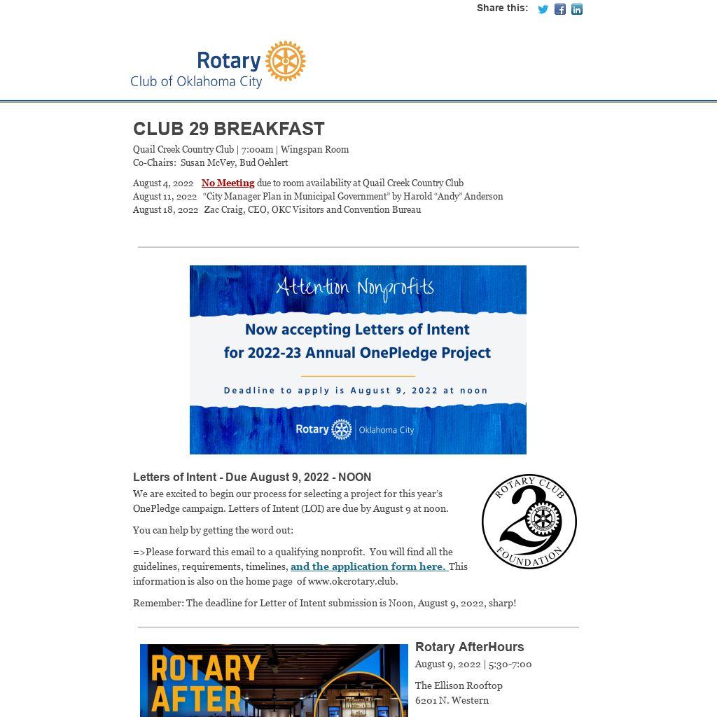 August 4, 2022 No Meeting due to room availability at Quail Creek Country Club
