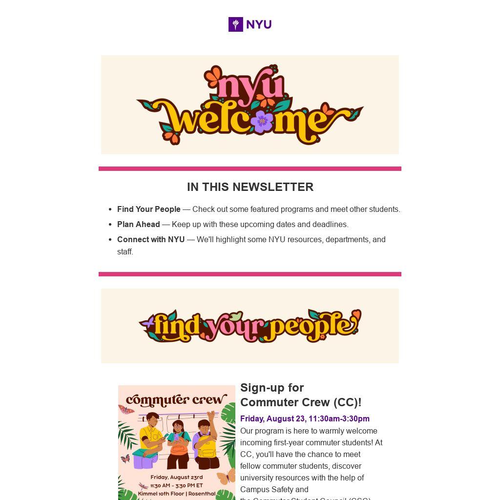 If you applied to live on campus for fall, check your NYU inbox for an update regarding your housing assignment. All students must register for a time to move into your residence hall. This email from Housing shares how to register for your check-in date and time.