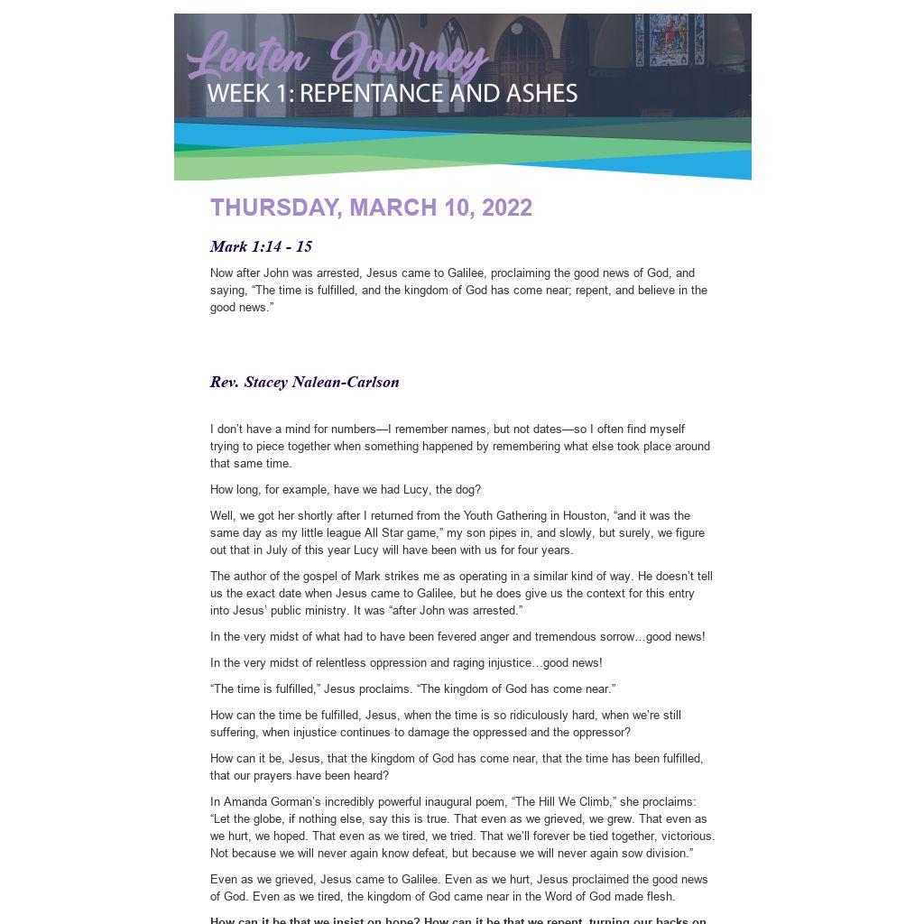 Even as we grieved, Jesus came to Galilee. Even as we hurt, Jesus proclaimed the good news of God. Even as we tired, the kingdom of God came near in the Word of God made flesh.