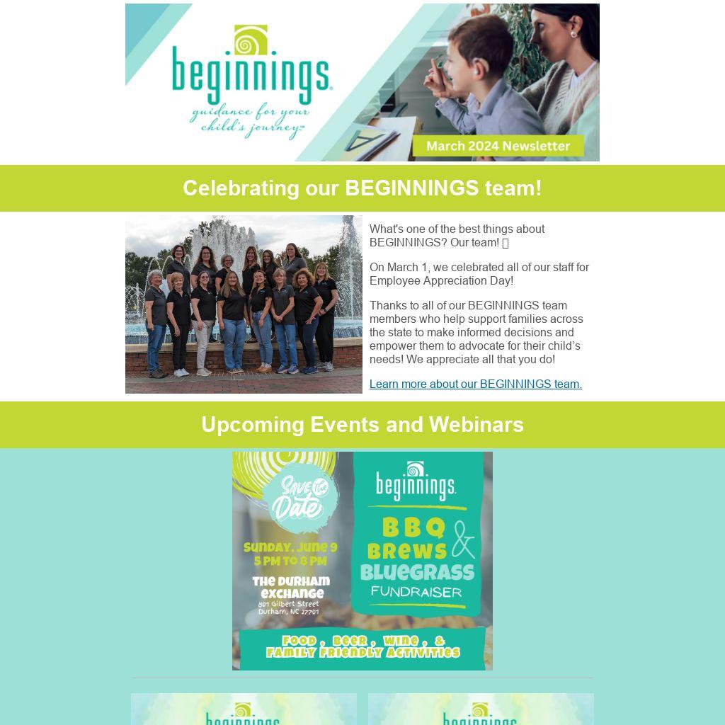 Have a topic you'd like to see in an upcoming newsletter? Let us know! Send an email to marketing@ncbegin.org on any information you'd like us to feature in a future edition.Â