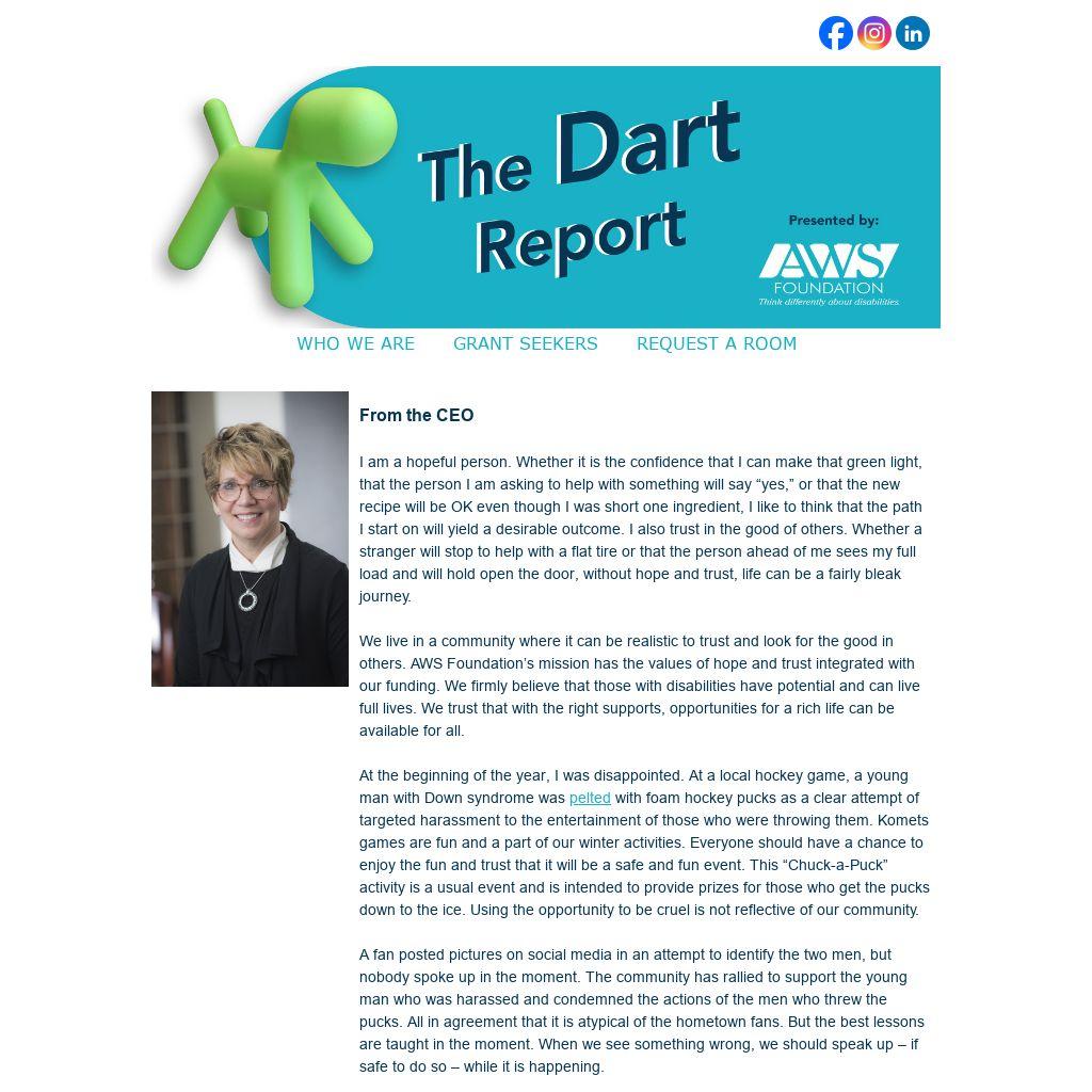 We live in a community where it can be realistic to trust and look for the good in others. AWS Foundation’s mission has the values of hope and trust integrated with our funding. We firmly believe that those with disabilities have potential and can live full lives. We trust that with the right supports, opportunities for a rich life can be available for all.