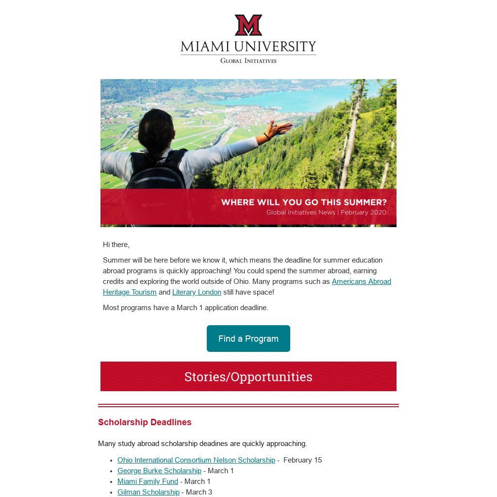 Follow us on social media and tag #MiamiOHGlobal for a chance to be featured.