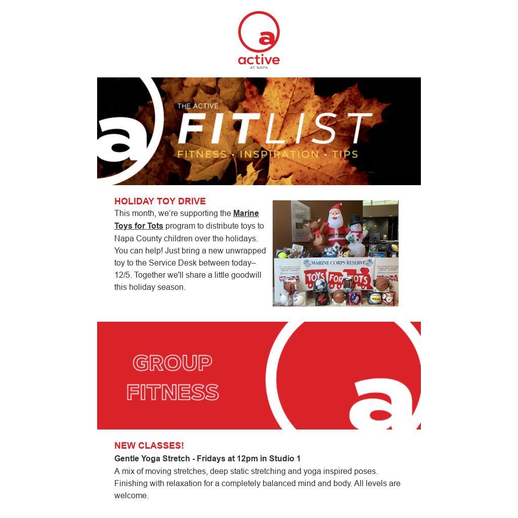 HOLIDAY TOY DRIVEThis month, we’re supporting the Marine Toys for Tots program to distribute toys to Napa County children over the holidays. You can help! Just bring a new unwrapped toy to the Service Desk between today–12/5. Together we'll share a little goodwill this holiday season.