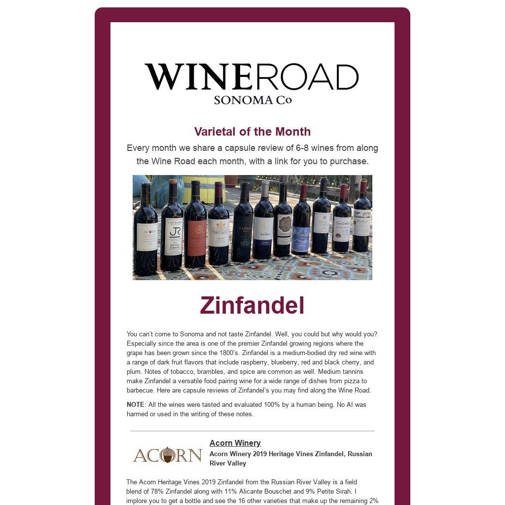 | Varietal of the Month Every month we share a capsule review of 6-8 wines from along the Wine Road each month, with a link for you to purchase.