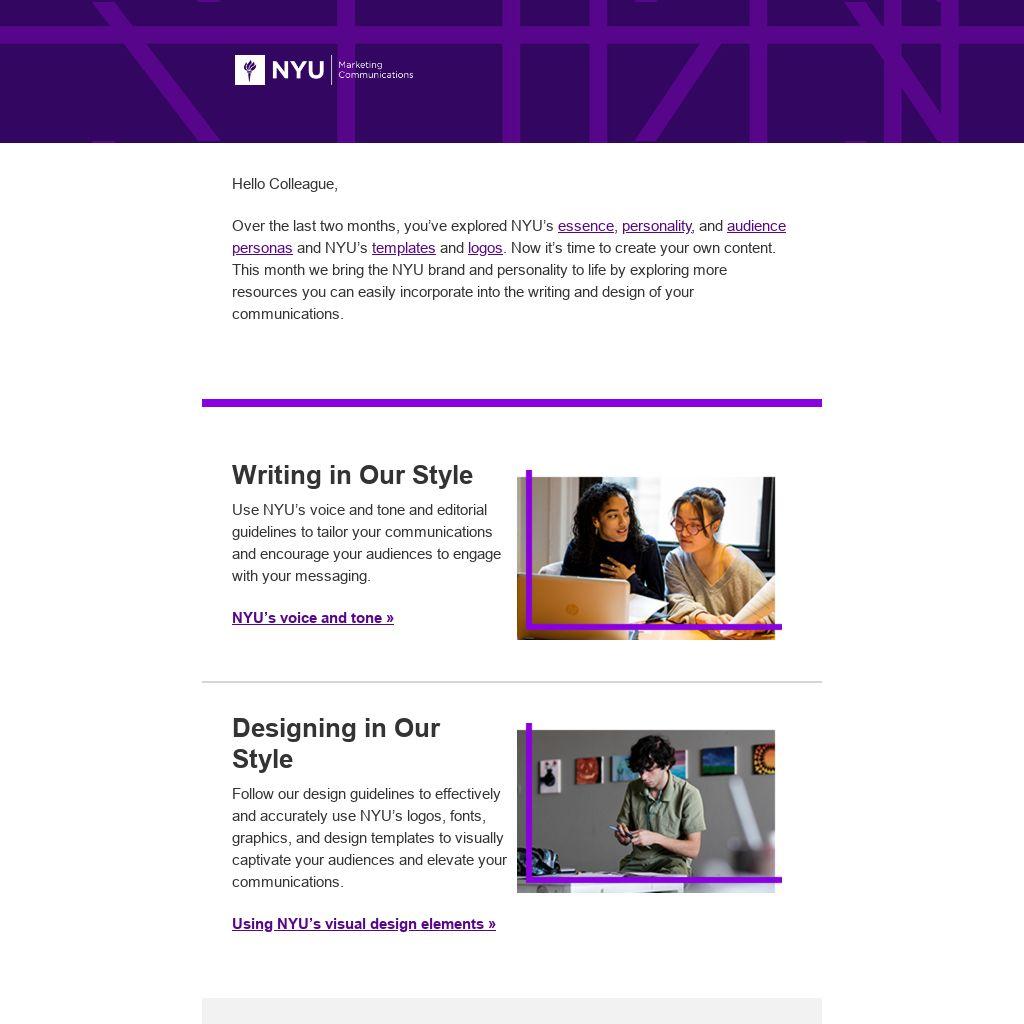 Use NYU’s voice and tone and editorial guidelines to tailor your communications and encourage your audiences to engage with your messaging.