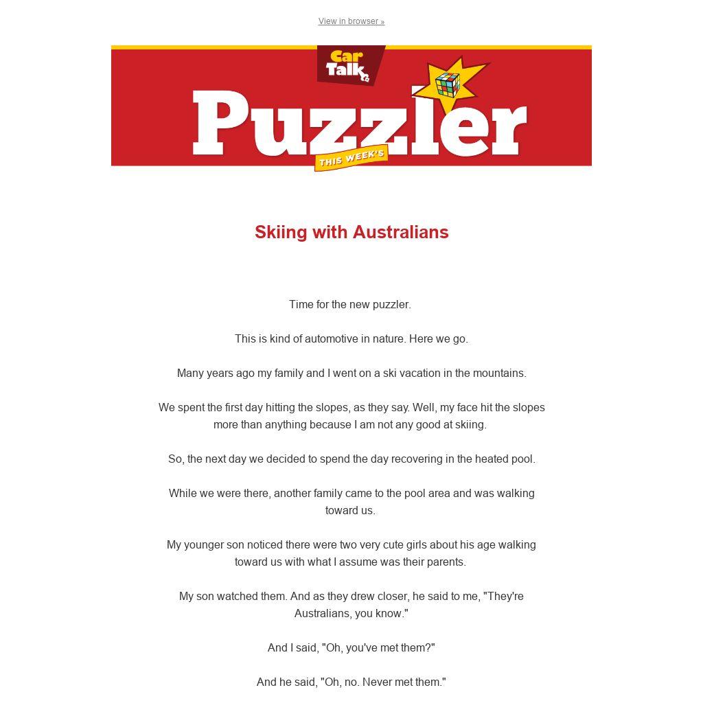 As luck would have it, they come right near us and sit next to us. At this point, my son leans over and says, "Pretty long way to go from Australia to do a little skiing."