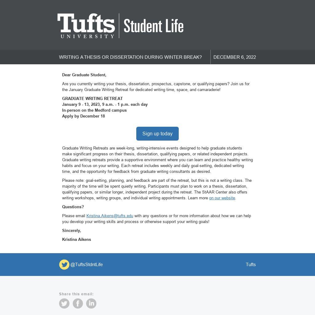 Are you currently writing your thesis, dissertation, prospectus, capstone, or qualifying papers? Join us for the January Graduate Writing Retreat for dedicated writing time, space, and camaraderie!