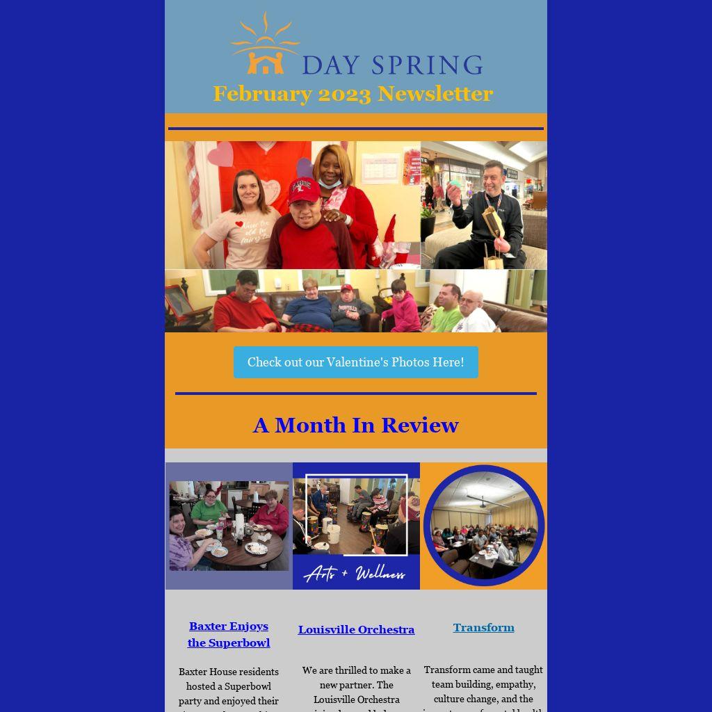 | We are thrilled to make a new partner. The Louisville Orchestra joined us and led an interactive drum circle with our residents. Our Day Spring family enjoyed making music together!