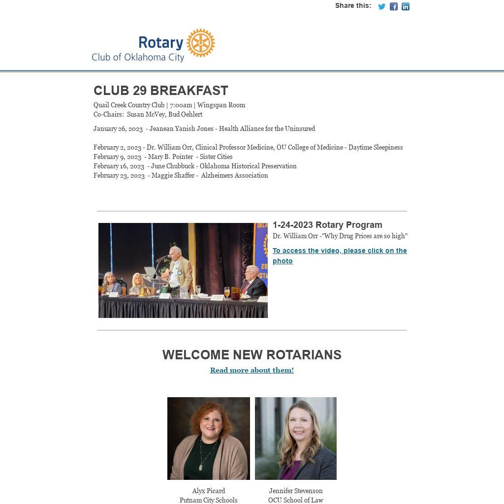 | Congratulations to the newly elected Rotary Club of Okla. City Officers and Directors