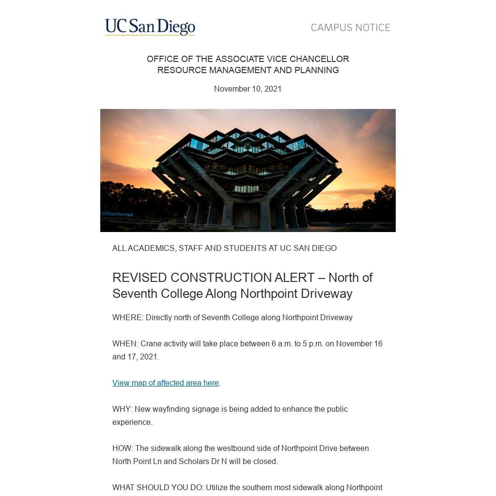 REVISED CONSTRUCTION ALERT – North of Seventh College Along Northpoint Driveway
