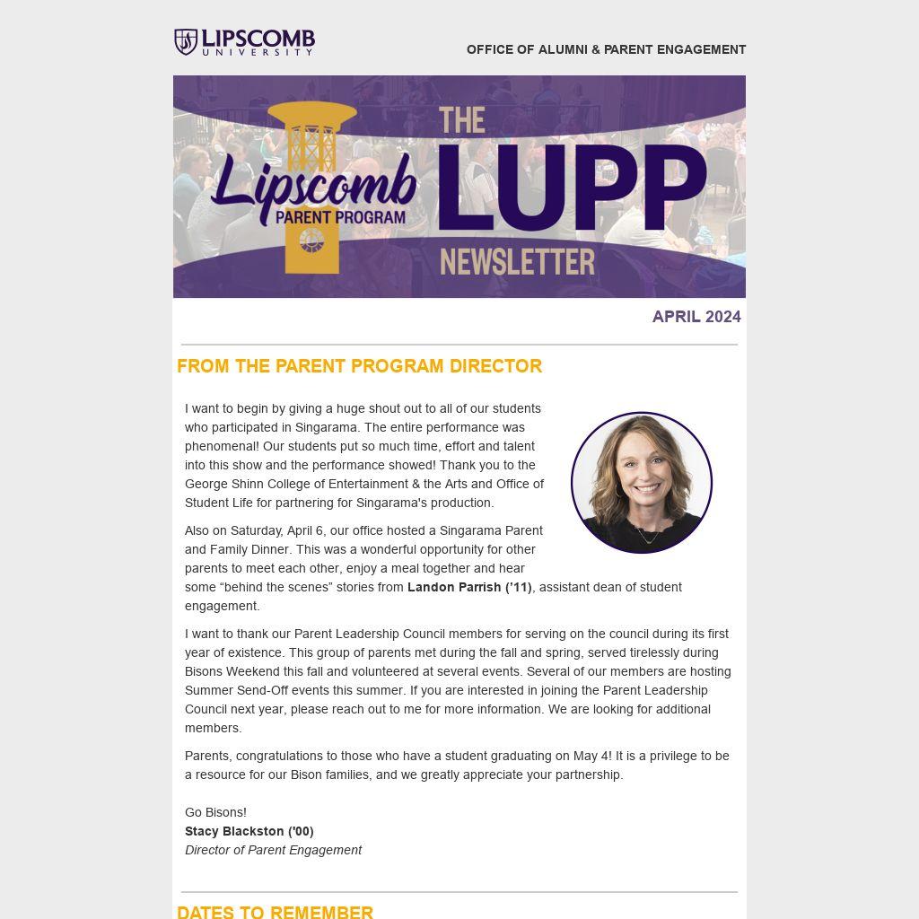 I want to thank our Parent Leadership Council members for serving on the council during its first year of existence. This group of parents met during the fall and spring, served tirelessly during Bisons Weekend this fall and volunteered at several events. Several of our members are hosting Summer Send-Off events this summer. If you are interested in joining the Parent Leadership Council next year, please reach out to me for more information. We are looking for additional members.
