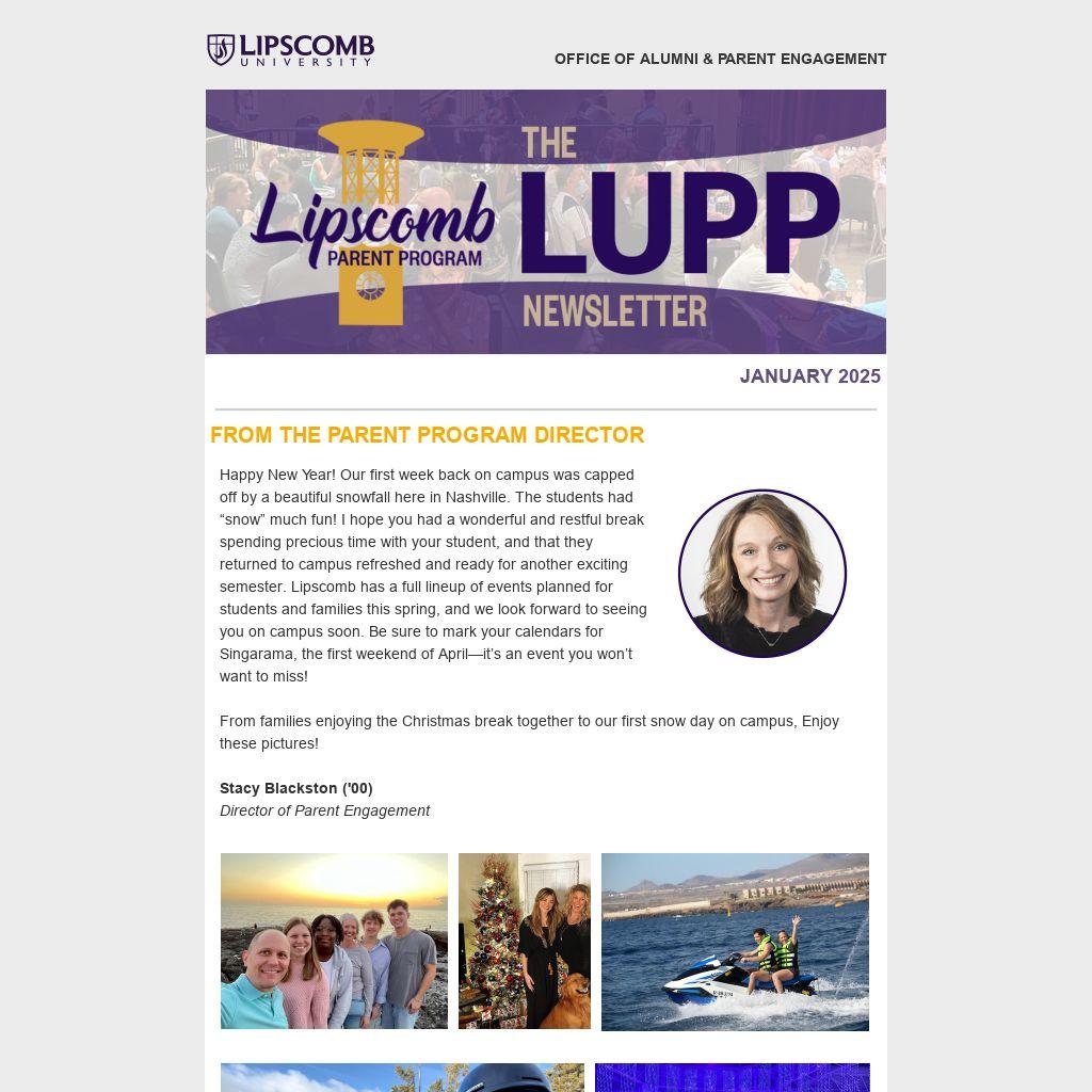 Parent Dinner: On April 5, the Office of Parent Engagement is hosting a parent dinner. We hope you and your family plan on attending. Mark your calendar! Registration for the dinner opens in February.