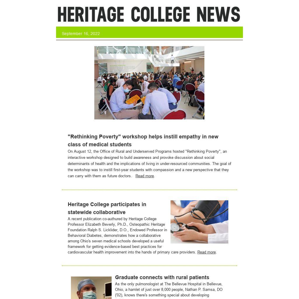 A recent publication co-authured by Heritage College Professor Elizabeth Beverly, Ph.D., Osteopathic Heritage Foundation Ralph S. Licklider, D.O., Endowed Professor in Behavioral Diabetes, demonstrates how a collaborative among Ohio's seven medical schools developed a useful framework for getting evidence-based best practices for cardiovascular health improvement into the hands of primary care providers. Read more.
